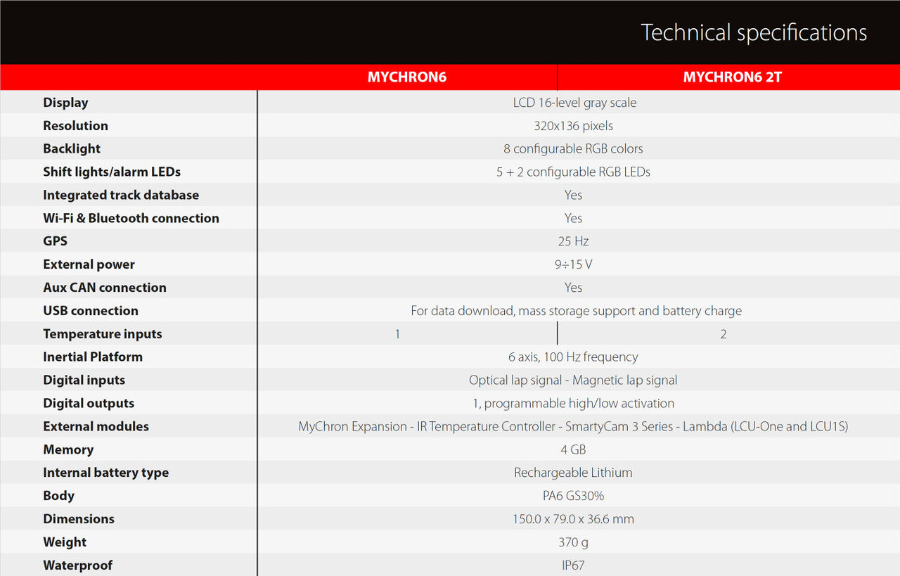 With an updated screen showing 16 shades of gray, USB C connection, CAN input, a wider display, 6 axis IMU for better data and steering position!, and a 20 hour internal battery. The bar has been raised and the M6 will do everything you need in a gauge.