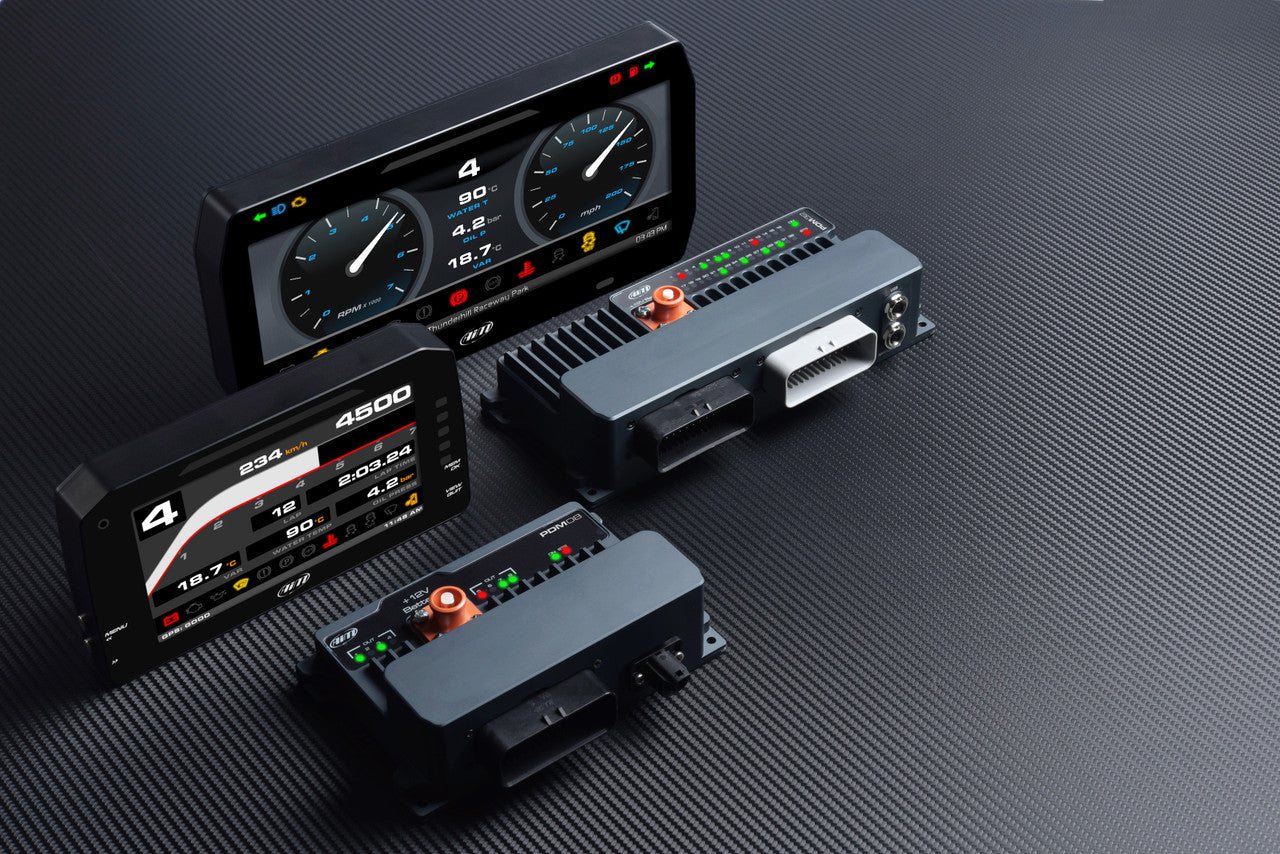 An AiM PDM at the center of vehicle electronics will greatly simplify your wiring harness and electronics installation while providing much more control.