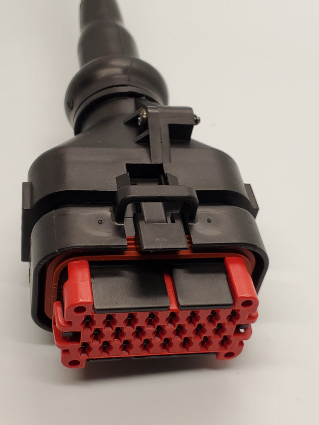 This custom made Plug and Play harness for the RIO unit allows you to avoid having to terminate the AMP connector and move right on to connecting your switches, inputs, and digital outputs. Save yourself time and frustration in your project with this easy to use harness. Genuine AMP connectors, Tefzel wire, Raychem shrink, and thorough testing ensure you receive a quality product that will live in the motorsport enviroment.